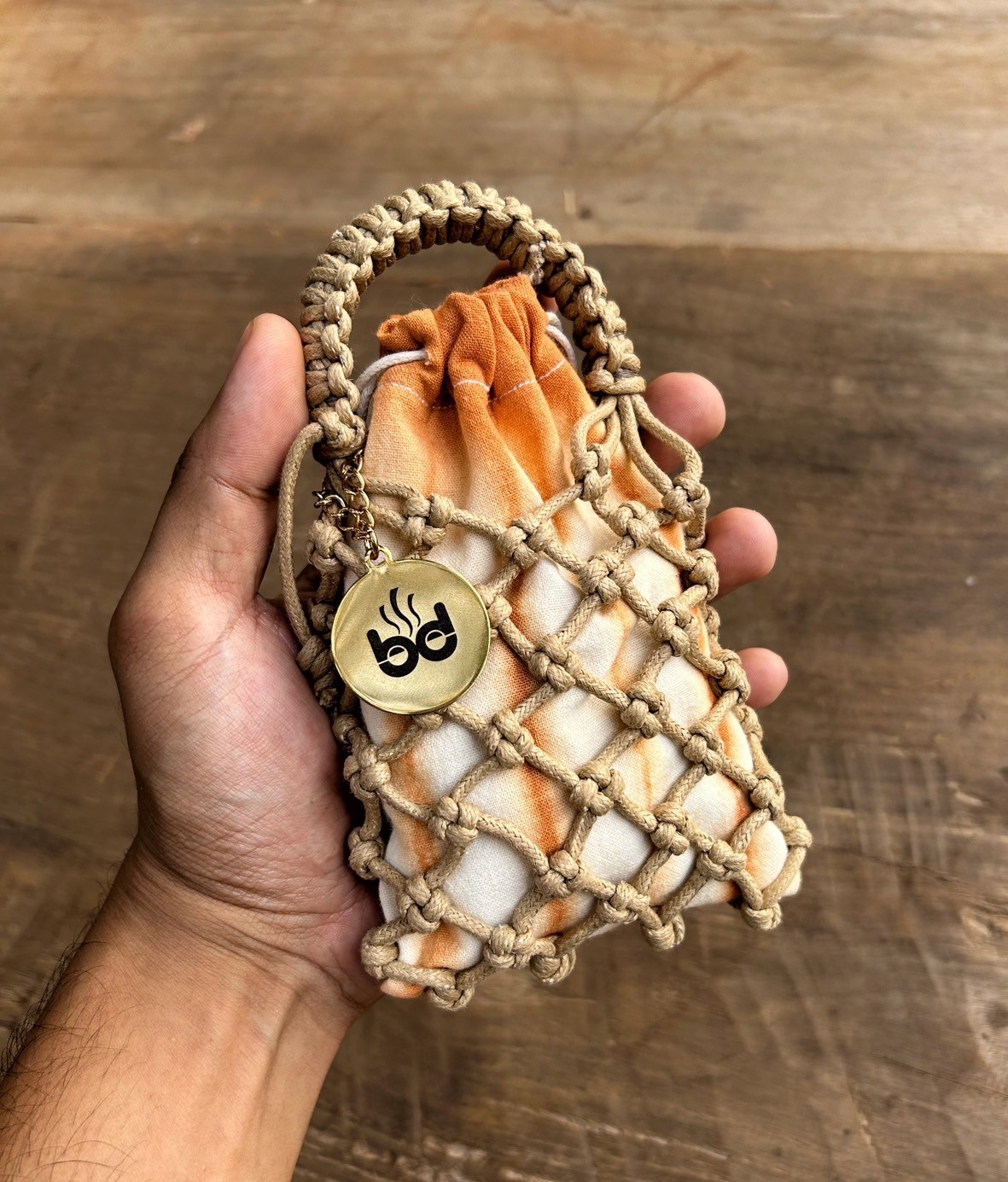 Using local rocks and pebbles allows us to share fascinating geological stories about the area with our customers. And let's not forget the macrame rope that ties the whole sachet together! This detail highlights the enterprise members' expertise in rope braiding. Every dollar spent on these sachets directly benefits the community.